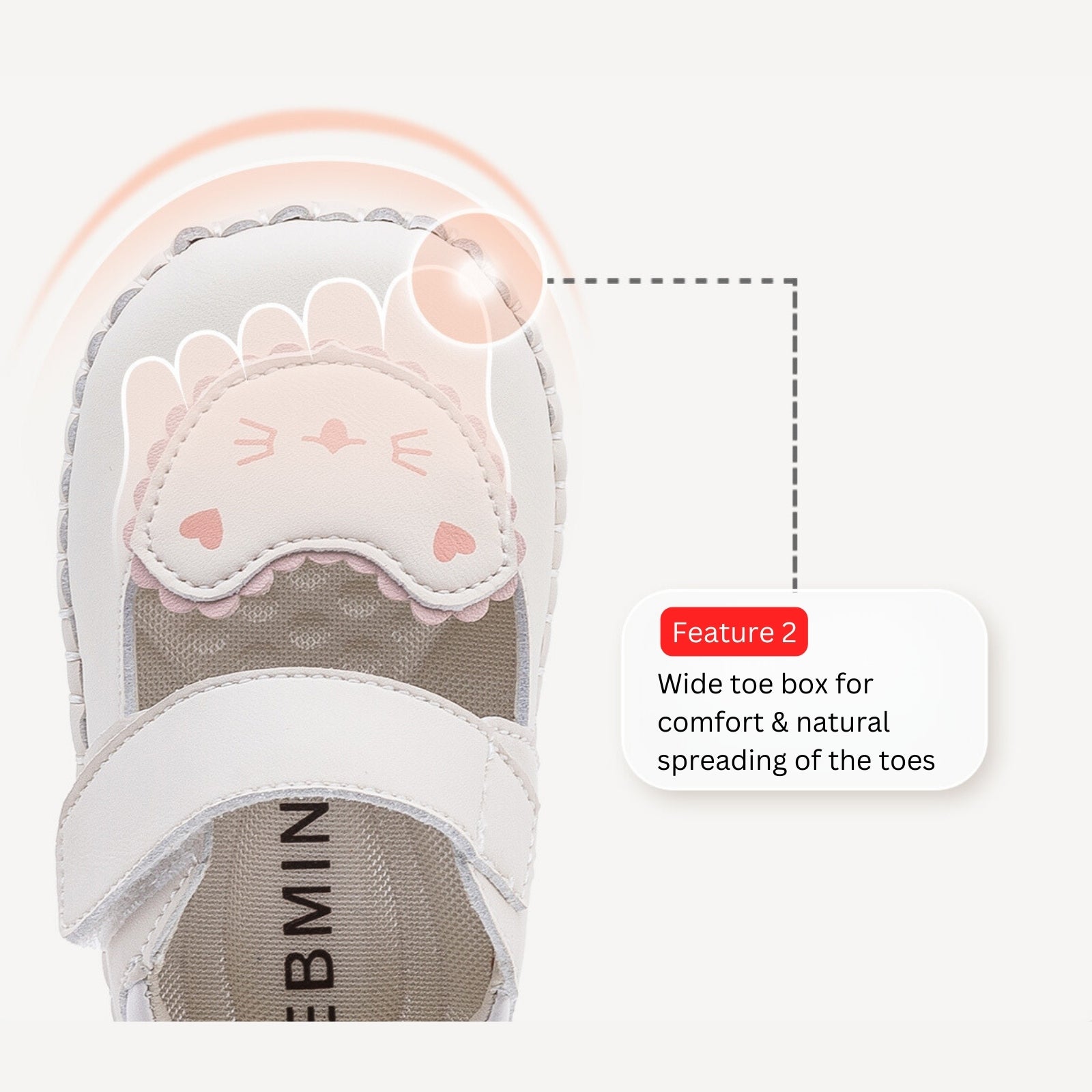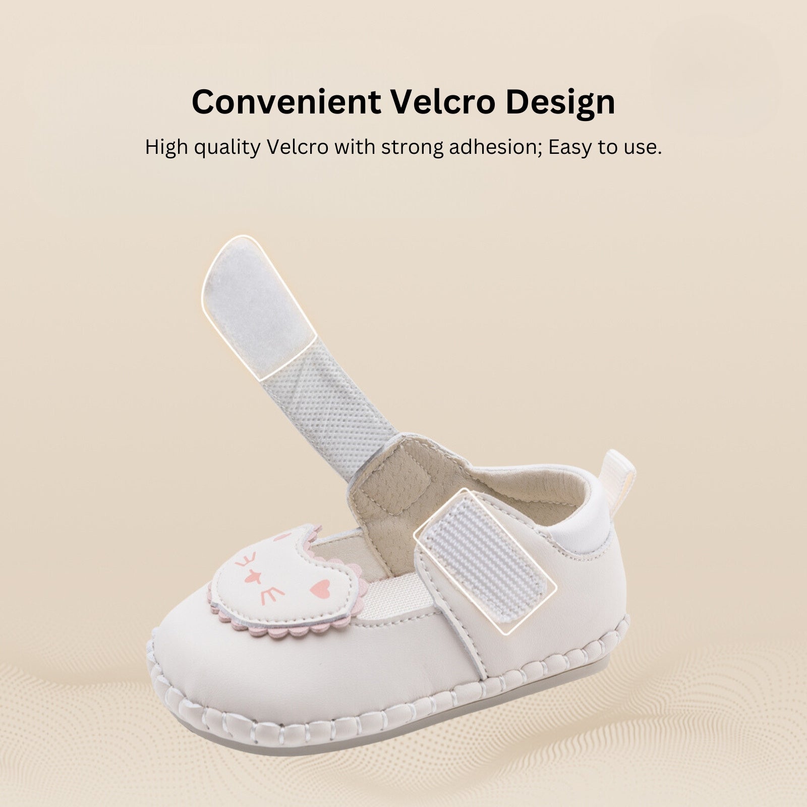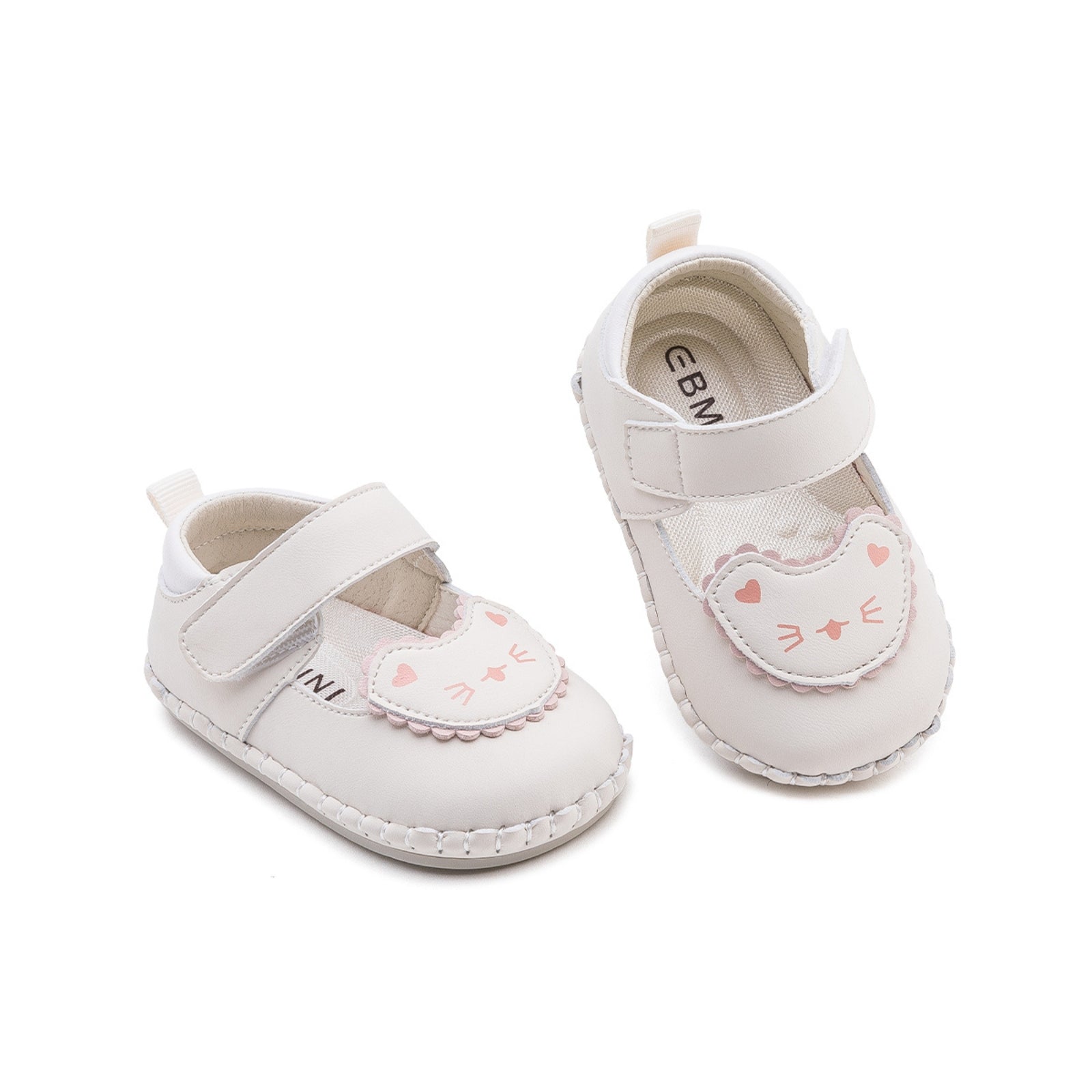 Ebmini Purrfectly Sweet Mary Janes is a must-have in your little one's wardrobe. This simple white pair is adorned with an irresistible cat embellishment in white and pink, adding a playful and girly touch to any outfit. The wide toe box ensures ample space for tiny toes to wiggle and grow comfortably. With a convenient hook and loop closure, these Mary Janes are easy to put on and take off, making dressing up hassle-free for busy parents and wriggly babies. Let your little princess step out in style and sweetness with Ebmini Purrfectly Sweet Mary Janes.