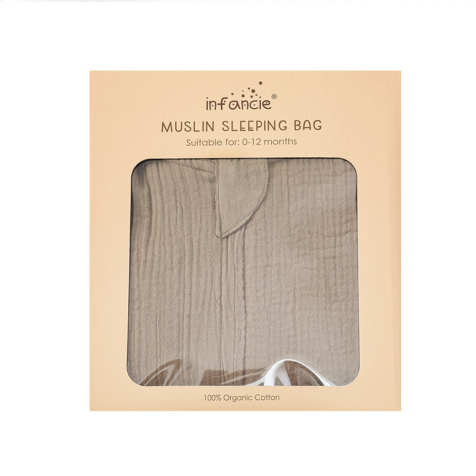 INFANCIE Organic Cotton Baby Muslin Sleep Sack (Taupe)