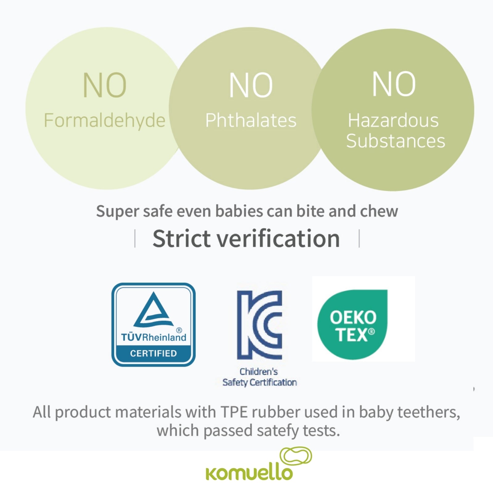 ✔ Child-Safe Materials – Made with non-toxic TPE (commonly used for teethers) and breathable cotton, bonded using a heat process—no commercial adhesive glue!