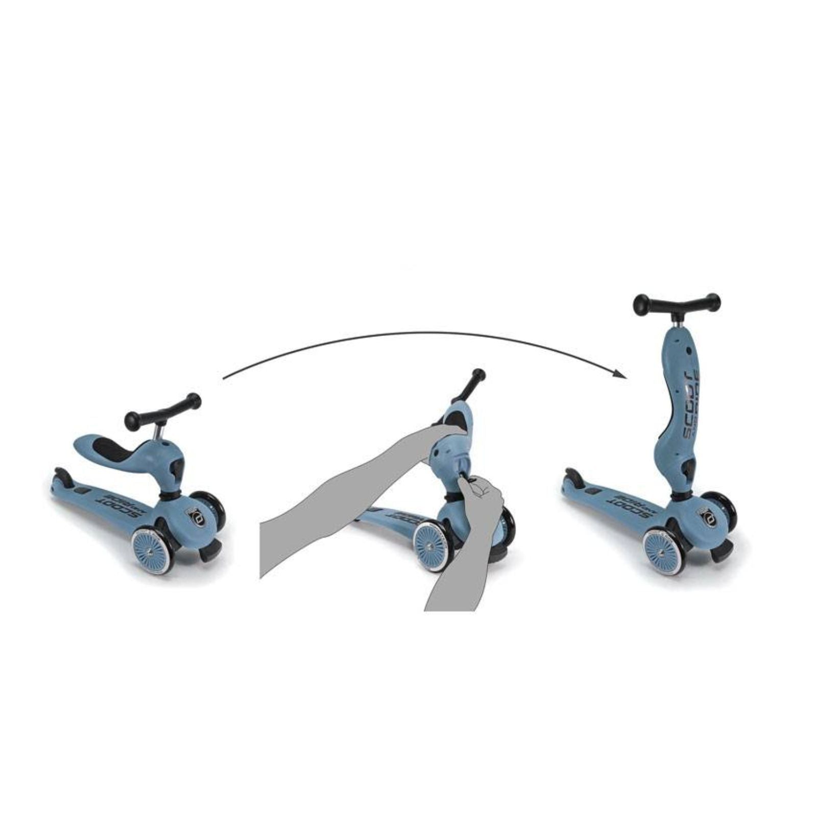 The scooter can simply switch to a ride on bike within seconds and minimal effort.
